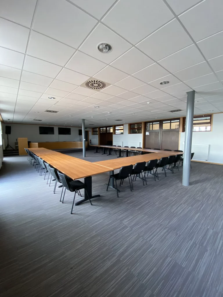 Vergader in alle rust in een professioneel uitgeruste vergaderzaal.